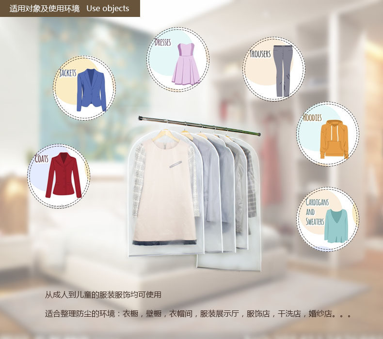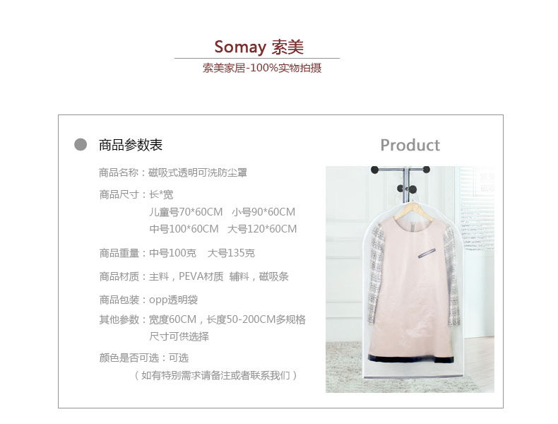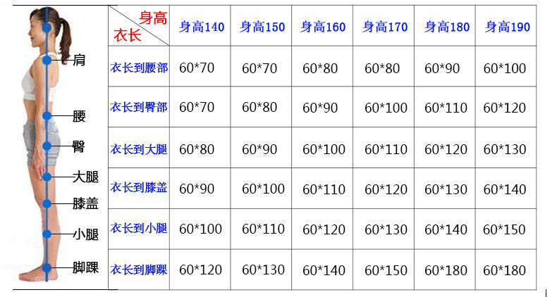 举例:身高170、衣长到膝盖,就选择60*120的防尘罩!