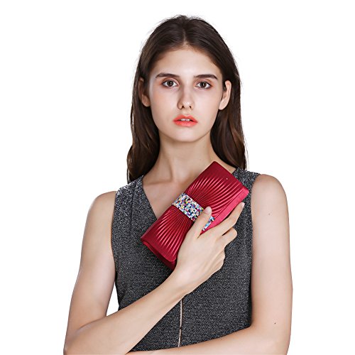 Perfectly pleated satin fabric with colorful rhinestone highlight your style.