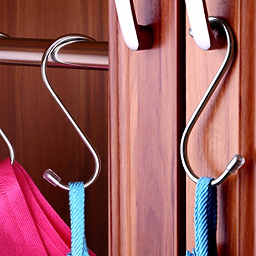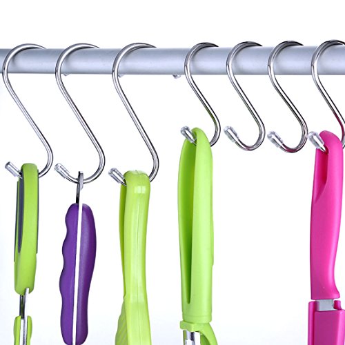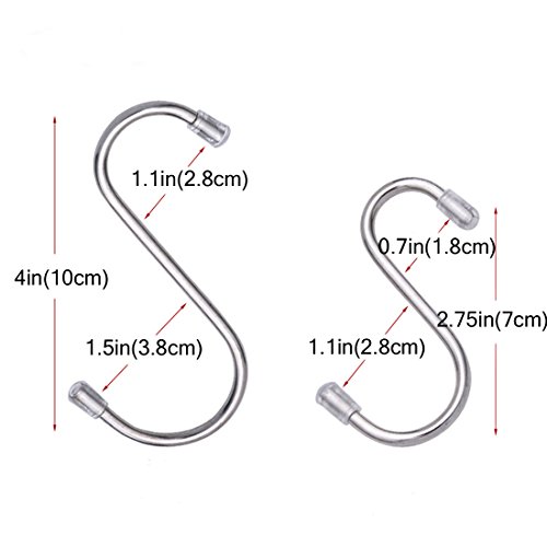 -. Feature : Perfect For Pot-Racks and Ceiling Dryers. Instant storage for hanging anything in your kitchen, closet, workshop or garage. / Can be used outdoors or indoors in any kind of weather conditions because these are stainless steel they can be used anywhere you need them. / Hook ends are flat, not pointed, For added safety. Stainless steel shiny silver-tone finish. / Large: 10CM / 3.9 inches, Small:7CM / 2.75 inches. / Package including: 8 x SIZE "S" Silver Color Metal Hooks.