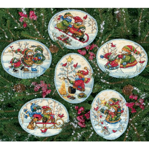 Gold Collection Playful Snowman Ornaments Counted Cross Stit-Up To 4.5 Set Of 6