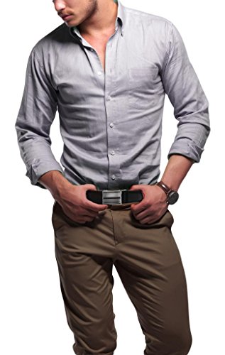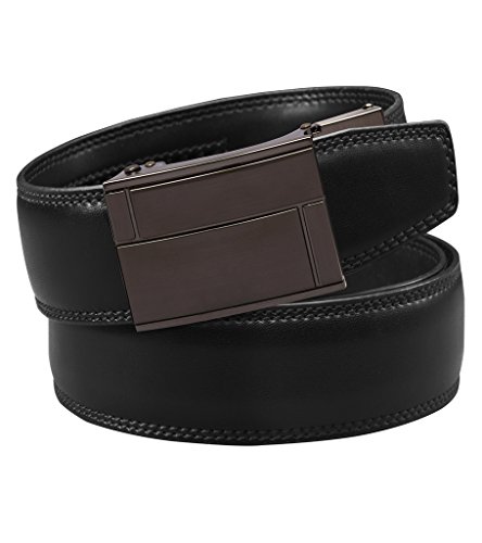 - Feature : No More Holes! Eazy adjustable 32-Position Track System for a perfect, comfortable fit - anytime and anywhere! / Extra Durable - Genuine leather belt (width: 35 mm/1-3/8 in) and high quality Zinc Alloy buckle coated with chrome that will lasts for years! / Highly Flexible - Removable buckles for eazy changing between belt colors to match your daily style. / Unmatched high quality belt for the affordable price! / Order with Confidence - The EazyBelt Guarantee: 45 days return policy, plus 180 days warranty on the buckle!