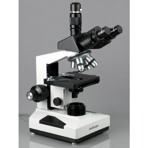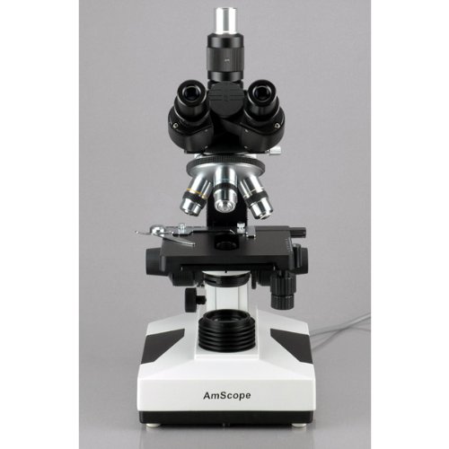 -. Title : AmScope T490B Compound Trinocular Microscope, WF10x and WF20x Eyepieces, 40X-2000X Magnification, Brightfield, Halogen Illumination, Abbe Condenser, Double-Layer Mechanical Stage, Sliding Head, High-Resolution Optics, 110V