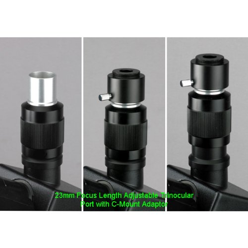 -. Feature : 40X-1600X eight widefield magnification settings / Simul-focal trinocular head boasting unique features / 23mm photo port for adding photo/video capability / C-mount adapter included / 3D two-layer mechanical stage with low position control