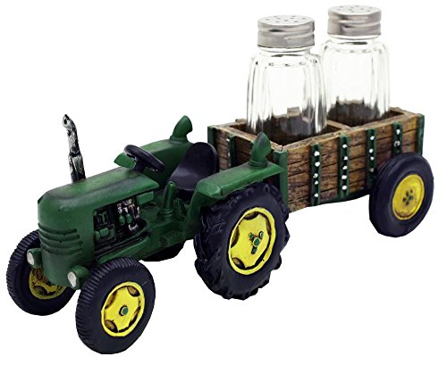 Green Tractor and Wagon Salt & Pepper Shaker Set - Farm Decor