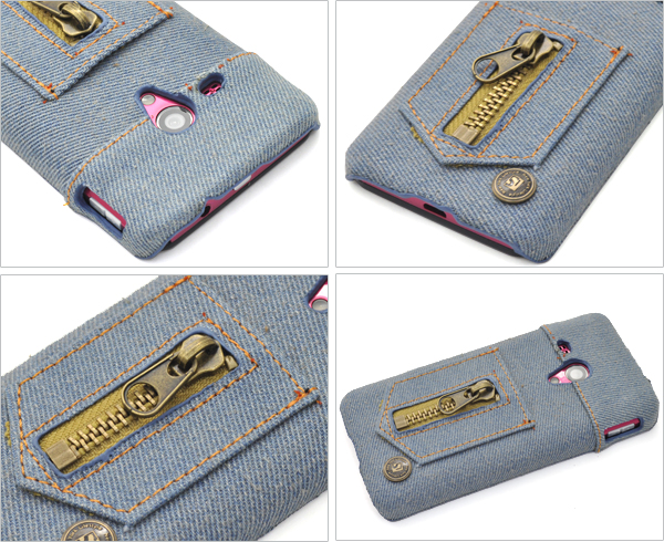 デニム素材を使用した、AQUOS PHONE EX SH-02F用デニムデザインケース。