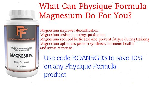 -. Feature : Best Magnesium Glycinate: Stop wasting your $ on cheap magnesium variations that your body can't absorb like oxide and citrate. The Physique Formula has gone the extra step and delivers Magnesium Glycinate that has a high absorption rate.Made with Albion magnesium glycinate 400 mg / Magnesium glycinate supplement: Bonded with the amino acid glycine so your magnesium passes through your gut unharmed by your stomach acid. Maximum effectiveness with our magnesium glycinate easy to swallow tablets / The Many Benefits Of Magnesium Glycinate: Magnesium is involved in over 350 DIFFERENT enzyme processes in your body including weight loss, mental health, muscle function and more. But the average American gets nowhere close to the average RDA recommended amount. / Magnesium Glycinate can optimize heart, hormone, sleep and muscle performance. Magnesium Glycinate is absorbed more efficiently than magnesium oxide, magnesium citrate or other forms. / All natural with no nasty additives included.Backed by our 100% money back guarantee