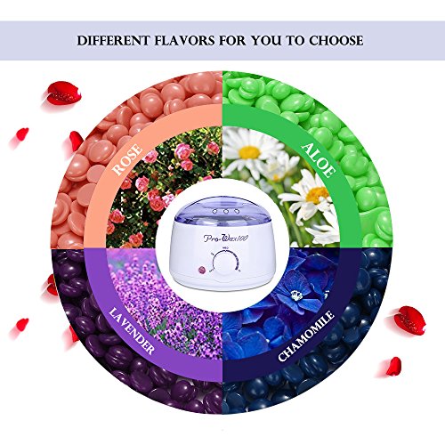 - ❤4 Different Ingredients: 4 different flavors hard wax beans made from natural ingredients: Chamomile, Rose, Lavender and Honey. You can choose according to your own preference,leaving your skin smooth all along with pleasant smells.