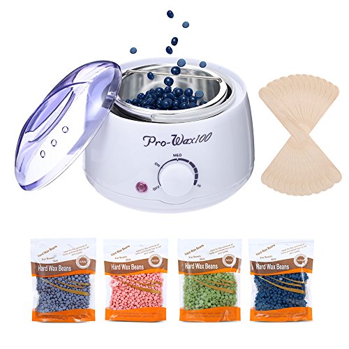 [2018 NEWVERSION] Wax Warmer, ZEEPIN Waxing Kit Hair Removal Rapid Melt Hard Wax with 4 Different Flavors, 20 Wax Applicator Sticks for Women and Men