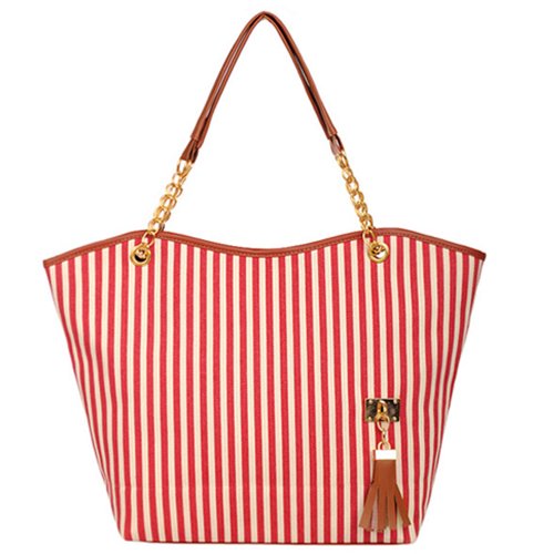 Tobey New Fashion Stripe Design Women Street Snap Candid Tote Single Shoulder Canvas Bag Handbag Three Colors Available Red Blue Black (Blue)