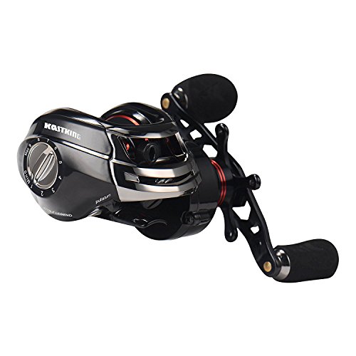 11+1 noise free high quality shielded stainless steel ball bearings quick, easy, and reliable magnetic dual brake system, with fully adjustable 10 level magnetic cast control and adjustable centrifugal brake. Brass gears, stainless steel spool shaft soft-touch, flat-sided, and durable foam handle grips are over-sized and slip resistant, helping you keep grip, even when wet smooth and reliable star drag system with a massive 13 lbs of stopping power smooth and durable ceramic insert line guide, allows for use with any type of line, including braid the new KastKing royal legend bait casting fishing reel delivers smooth consistent performance. A royal legend bait cast reel will keep you fishing all day long. Its over-sized flat-sided EVA foam soft grip reel handle reduces fatigue and delivers a soft, comfortable nonslip grip, even in the wettest conditions. Light weight, low profile bait caster design fits comfortably in your hand. Its quick access removable side plate gives easy access. This bait casting reels specs include 11 + 1 shielded stainless ball-bearings, 13 lbs./6 kg. Of drag from its smooth, reliable star drag system, 7.0:1 gear ratio, brass gears, and a CNC machined multi-ported aluminum whiffle styled spool that rides on a stainless steel shaft offers maximum strength with less weight. Its sleek black color and bold new look along with it dynamic design gives you the look, feel, strength, and reliability expected from a high price premium bait casting reel at a fraction of the cost. The new KastKing royal legend casting reel is saltwater approved. The royal legend makes a great combo when Matched to a KastKing bait casting rod. A cut above its predecessor, the KastKing royal legend offers more power, more speed and a bolder look.".Feature