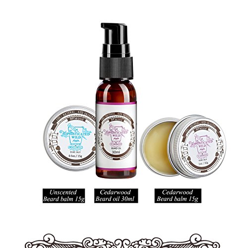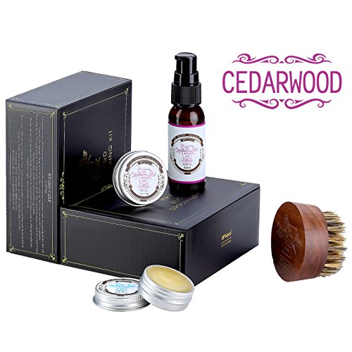 BFWood Beard Conditioner Kit – Cedarwood Scent Beard Oil 30ml, Beard Balm 30g, Boar Bristles Beard Brush for...