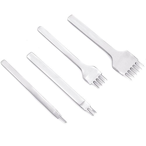 - 1 Set 4 Pcs Prong Punch: Made of White stainless steel, durable and useful, can punch and neat holes in leather straightly