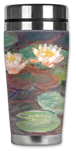 Mugzie 131-MAX "Monet: Water Lilies (close up)" Stainless Steel Travel Mug with Insulated Wetsuit Cover, 20 oz, Black