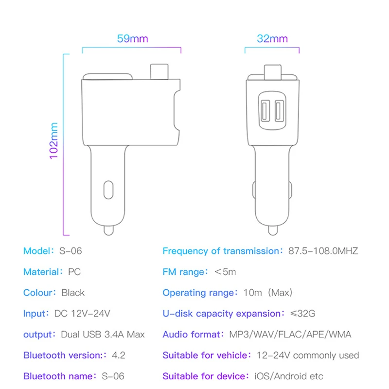Usage:FM Modulator, Car-Charger, Fast Charge, For iPhone Charger,