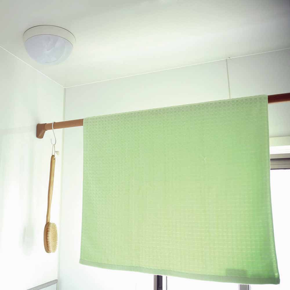It is a telescopic rod that can be fixed firmly to the wall without using screws or nails.
