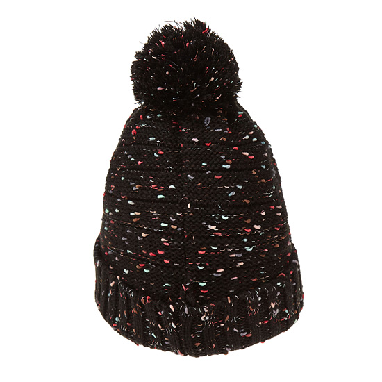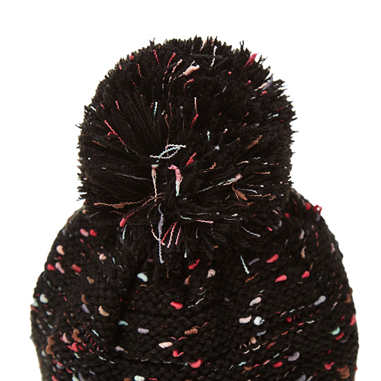 - 컬러 믹스 사를 적용한 발랄한 외관의 방울 니트 비니 모자.
