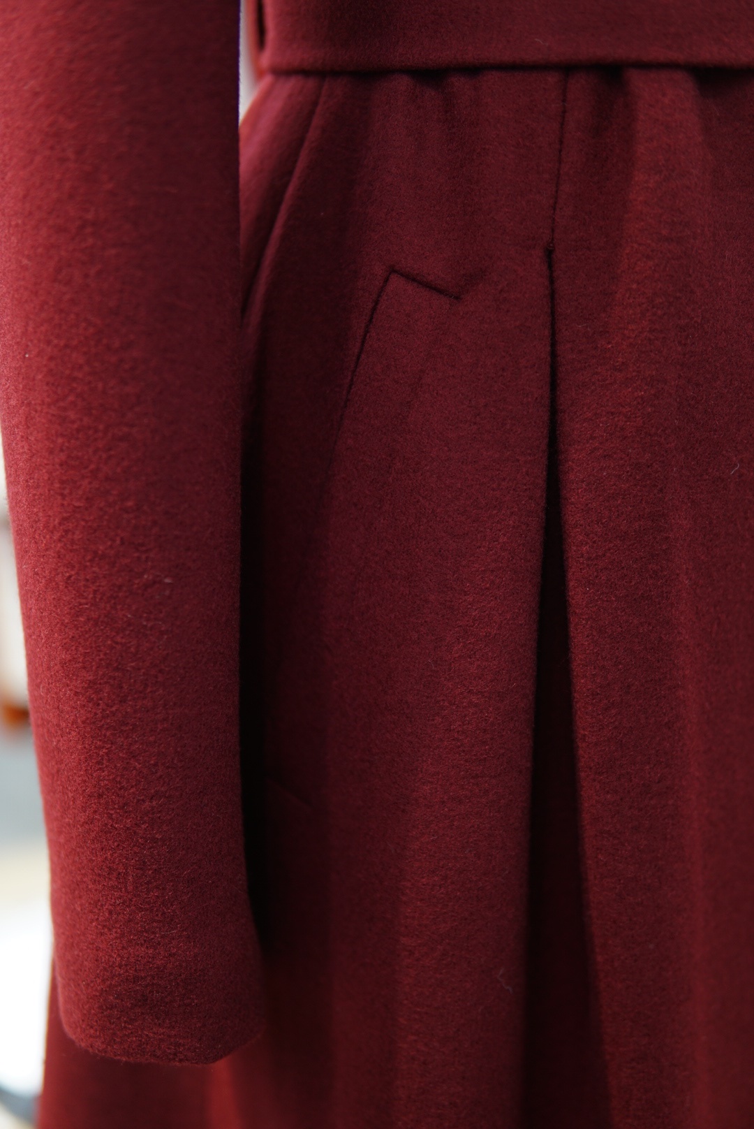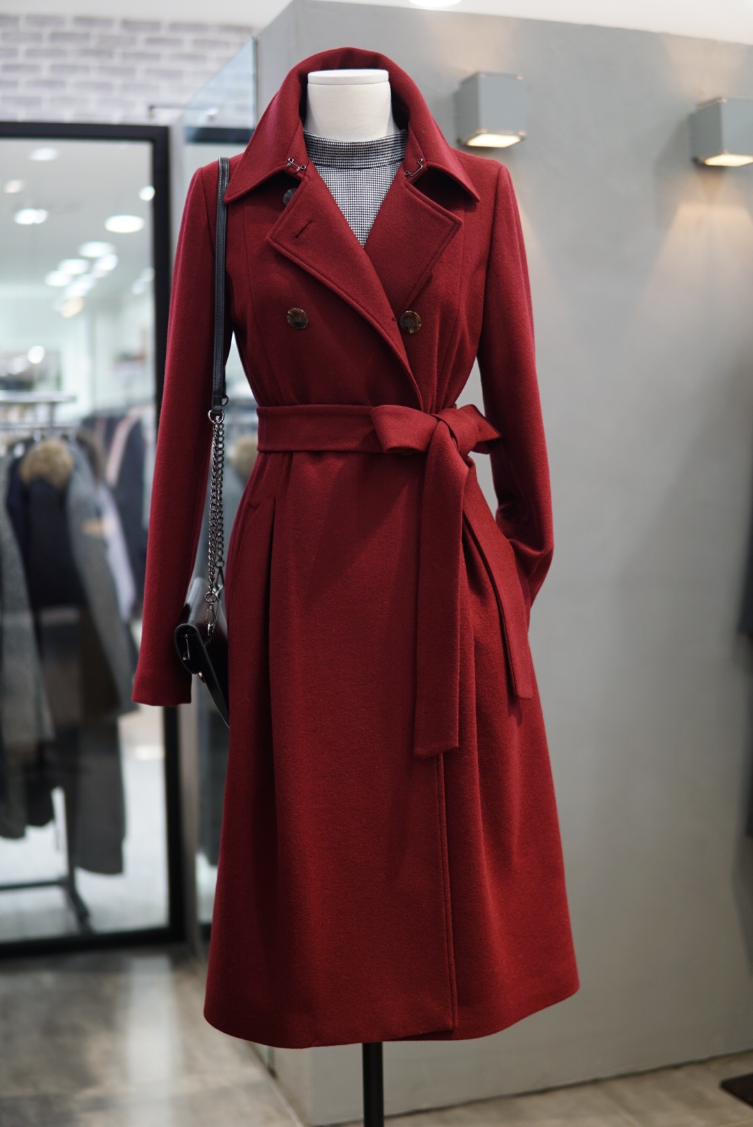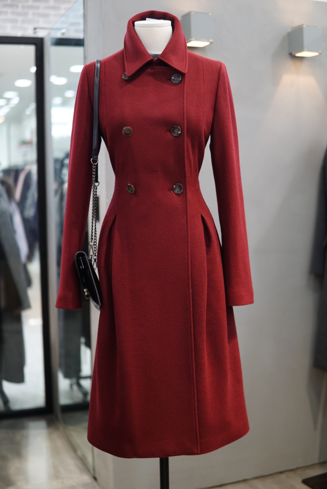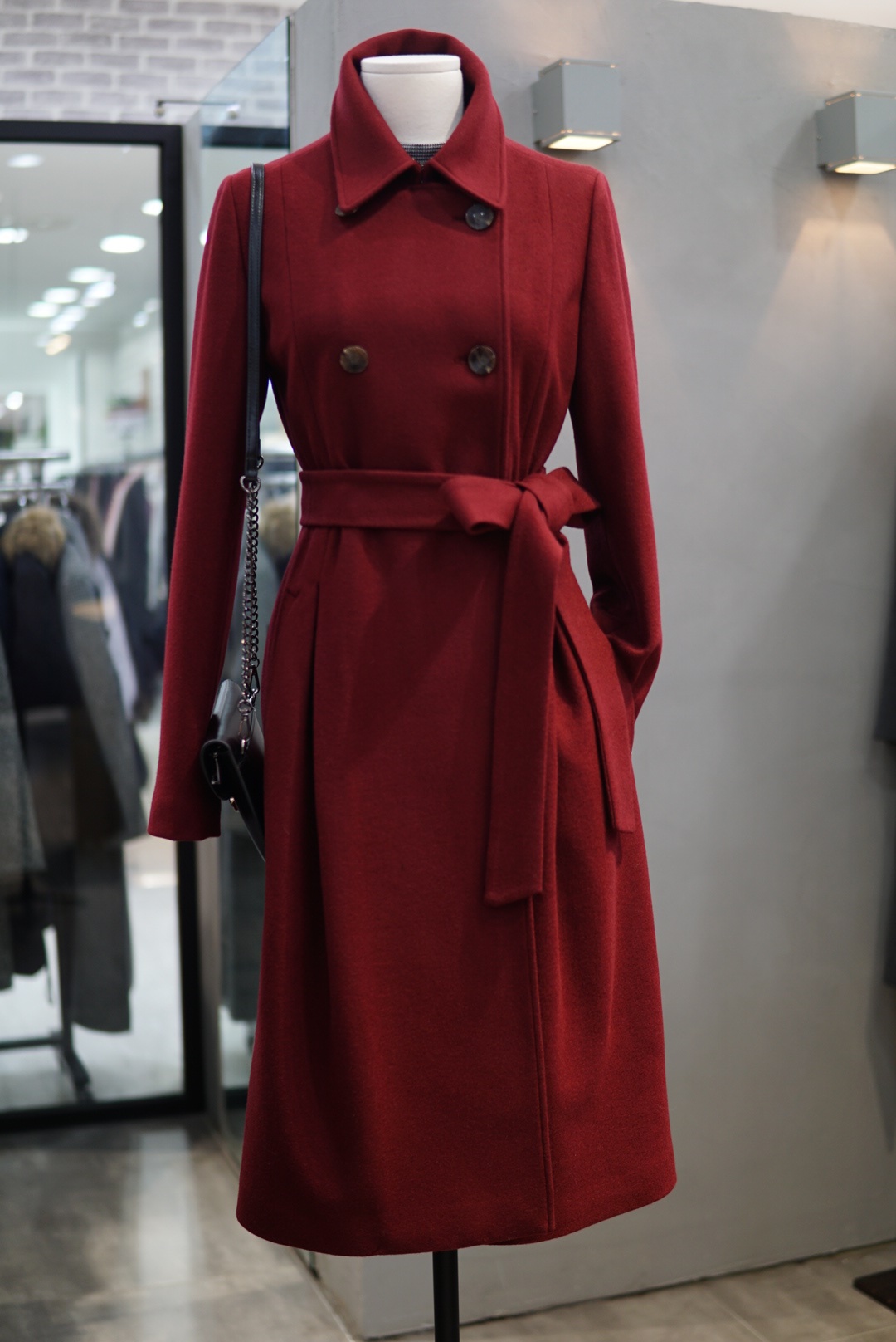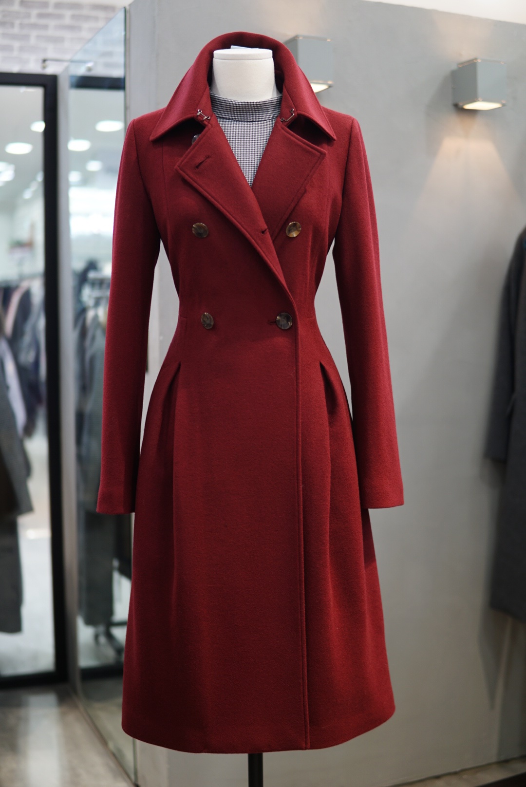 짙은 레드컬러의 여성스러운 벌룬 코트 소개해드려요~