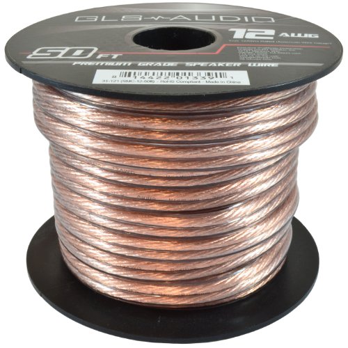 GLS Audio Premium 12 Gauge 50 Feet Speaker Wire - True 12AWG Speaker Cable 50ft Clear Jacket - High Quality 50' Spool Roll 12G 12/2 Bulk