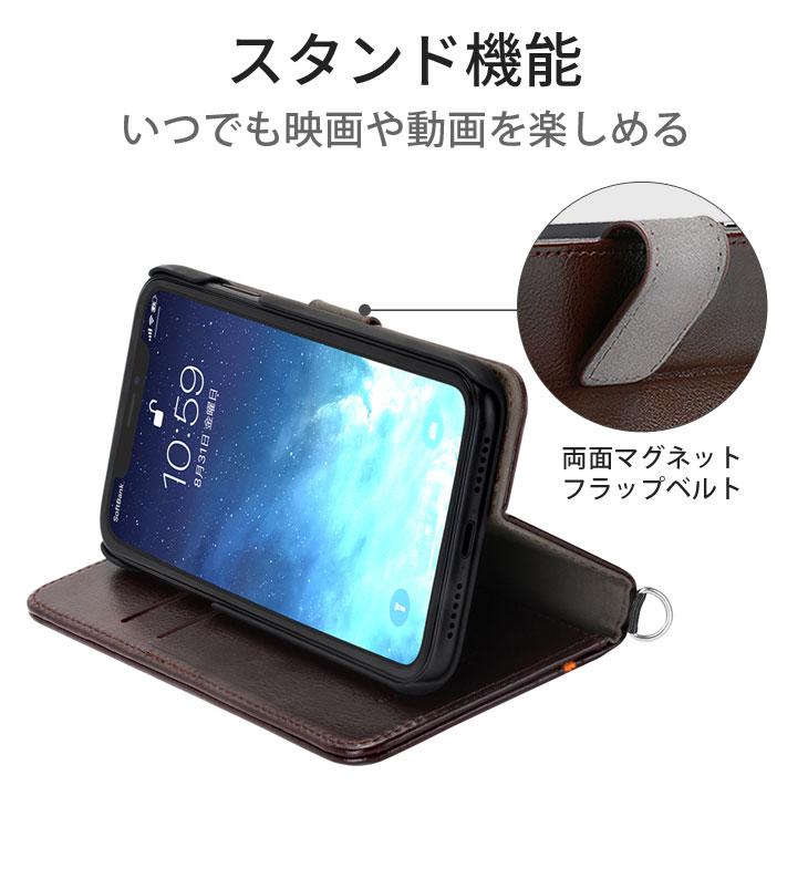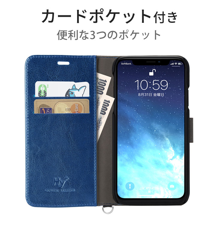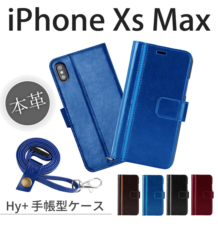 Hy+ iPhoneXs Max 本革レザーケース 手帳型 (ネックストラップ、カードポケット、スタンド機能付き)