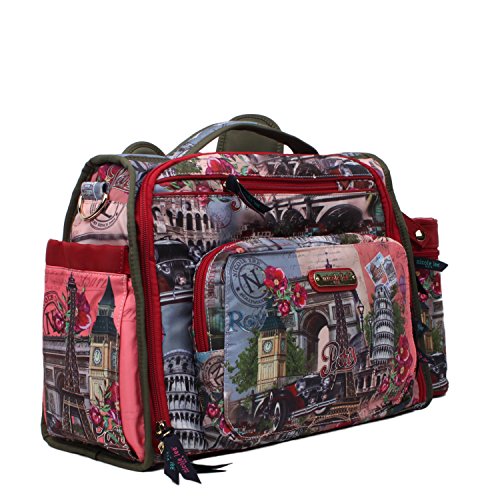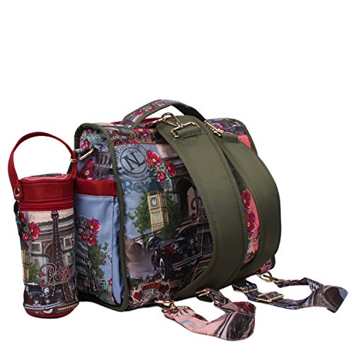 Nicole Lee Diaper Bag Backpack Multi-functional Pink Europe Print Convertiable Style Backpack