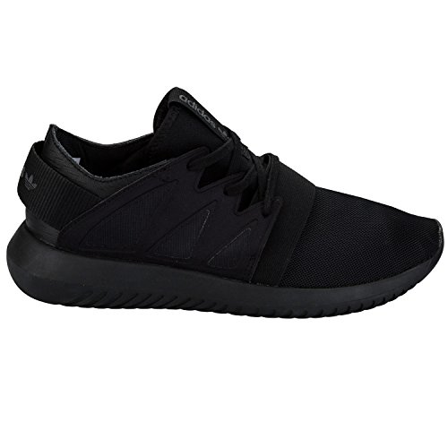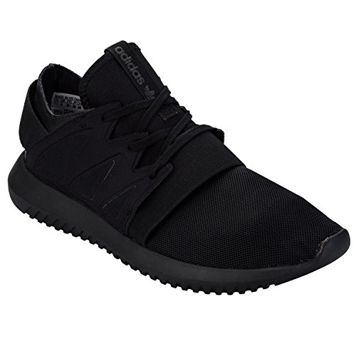 Binding : Apparel Product Description A sleek sneaker with an urban look, these women's Tubular Viral black trainers are made in breathable mesh with a perforated leather heel. An elastic strap secures the fit, while a heel strap displays the shoe's athletic heritage with a reflective adidas branding. 0