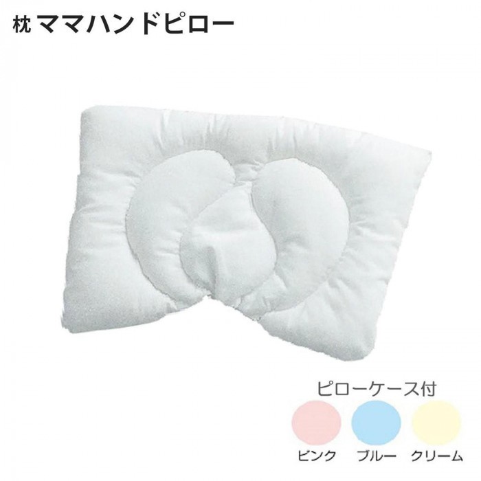 赤ちゃんの頭をやさしく包み込むママハンドキルティングが施されたまくらです。ピローケースは3色から選べます。 |