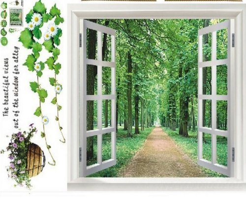 - Title : Hotportgift 90*60cm Scenery Outside the Window&Flower Wall Sticker Decor Decals Removable