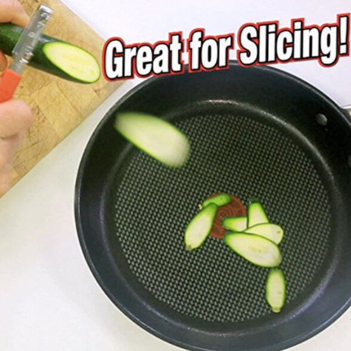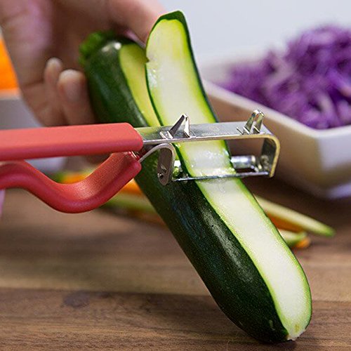 - LEFT AND RIGHT HANDED: Compatible wth Left and Right handed people, the peeler also moves back and forth on your produce making it easy for everyone to use
