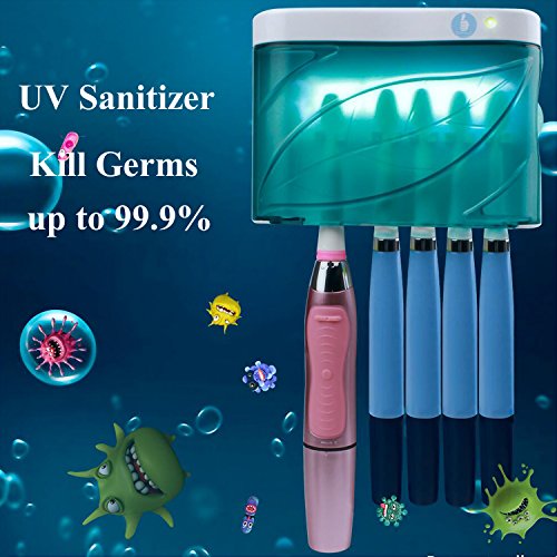 Family Toothbrush Holder Wall Mounted UV Toothbrush Sanitizer with AC Adapter 6-8 Minutes UV Sterilizer - Kill Germs up to 99.9%