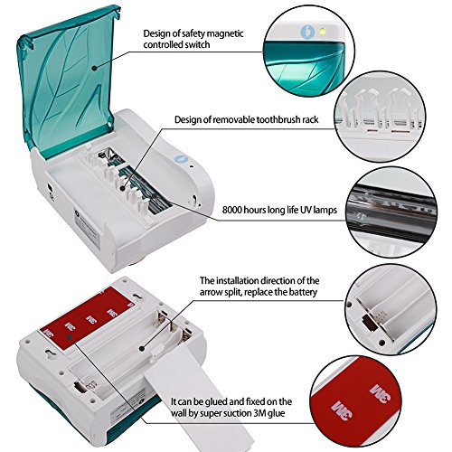 - AUTO ON-OFF: Use germicidal UV light technology, auto start when door is closed and shut off after 6-8 minute cycle. Eliminates up to 99.9% of the germs and bacteria on your toothbrush.