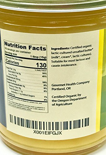 Ghee Clarified Butter Organic Grass-Fed by Gourmet Health Co, 8 ounce, Non-GMO, Lactose Free, Pasture-Raised Cows