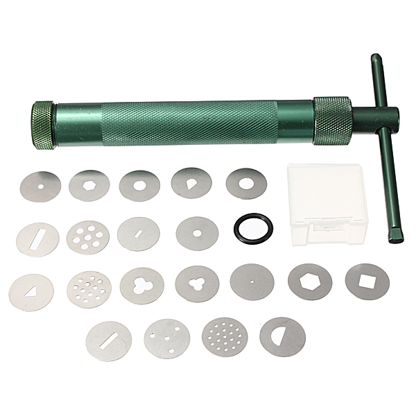 - This clay gun has 19 interchangeable discs for a range of designs