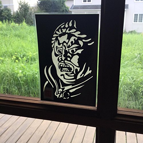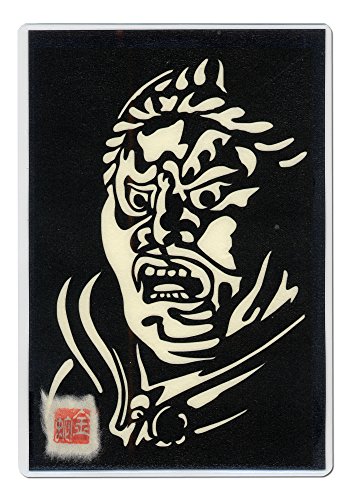 Japanese art collage KIRIE “Todaiji Zochoten - The face -” Virudhaka (Buddhist deity) one of the Shitenno (the Four Heavenly Kings) Made by Washi(Japanese paper) Basic color, 4” x 6”