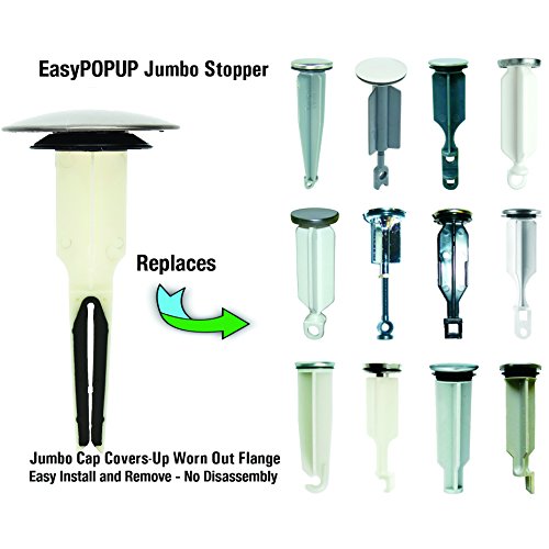 PF WaterWorks EasyPOPUP Universal Sink Pop-Up Stopper with Quick Sink Drain Cover-Up Jumbo Cap, Chrome, PF0260
