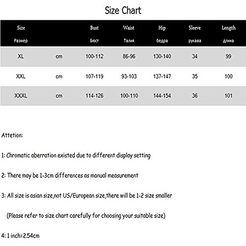Size Guide: XL: CHEST: 100-112cm WAIST: 86-96cm HIP: 130-140cm LENGTH: 99cm