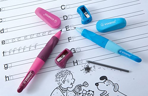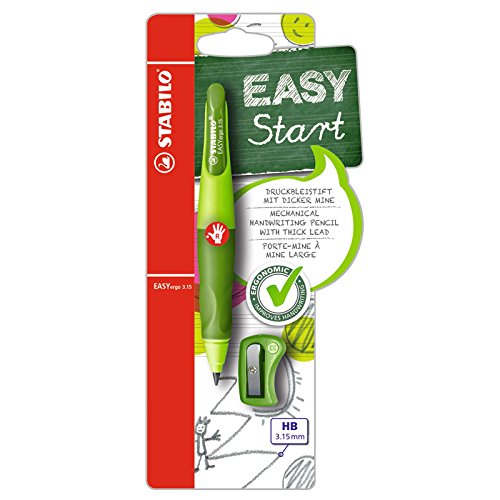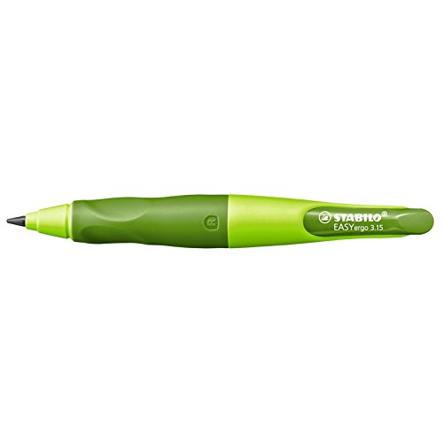 STABILO EASYergo 3,15 with 1 thick &HB Lead Sharpener-Ergonomic Pencil for Right-Handed Rollerball Pen Light / Dark Green