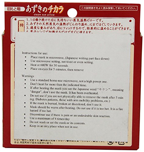 -. Feature : In modern life, working and internet surfing give enough pressure to your eyes. / This innovative eye warming pillow generates comfortable warming vapor, gives you a comfortable warmth for over-used eyes from full day's work in 10 minutes. Soothe, relief, and recover! / Natural vapor from bean helps relieve tiring eyes. Red and green bean is a kind of plants which contains high water content, compared with other cereals or beans. / After heating, the water content evaporates and release vapor. This warm vapor can effectively soothe the body and relieve stress and tiredness.