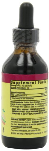 -. Binding : Health and Beauty -. Brand : Nature's Answer -. Department : Health and Beauty>Health and Wellness -. EAN : 0083000004278 -. Feature : 1:1 extract / Promotes urinary tract functions / Herbal supplement / SHAKE WELL. KEEP OUT OF REACH OF CHILDREN. WARNING: DO NOT USE IF PREGNANT OR NURSING.DO NOT USE IF SAFETY SEAL IS DAMAGED OR MISSING -. IsAdultProduct : 0 -. Label : Nature's Answer -. LegalDisclaimer : WARNING: Shake Well. Keep out of reach of children. Warning: Do not use if pregnant or nursing. Do not use if safety seal is damaged or missing. -. Manufacturer : Nature's Answer -. Model : 83000004278 -. MPN : 792816 -. NumberOfItems : 1 -. PackageQuantity : 1 -. PartNumber : 792816 -. ProductGroup : Health and Beauty -. ProductTypeName : HEALTH_PERSONAL_CARE -. PublicationDate : 2011-01-10 -. Publisher : Nature's Answer -. Size : 2 fl.oz. -. Studio : Nature's Answer -. Title : Nature's Answer Nettle Leaf with Organic Alcohol, 2-Fluid Ounces -. UPC : 083000004278