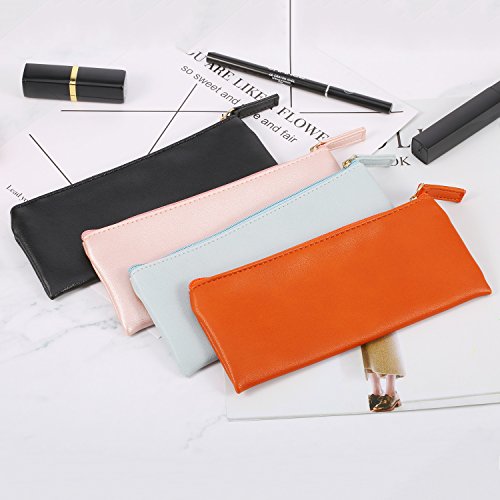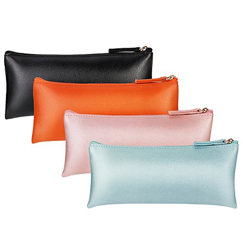 Shappy 4 Pack PU Leather Pencil Case Pencil Pouch, Makeup Cosmetic Bags with Zipper