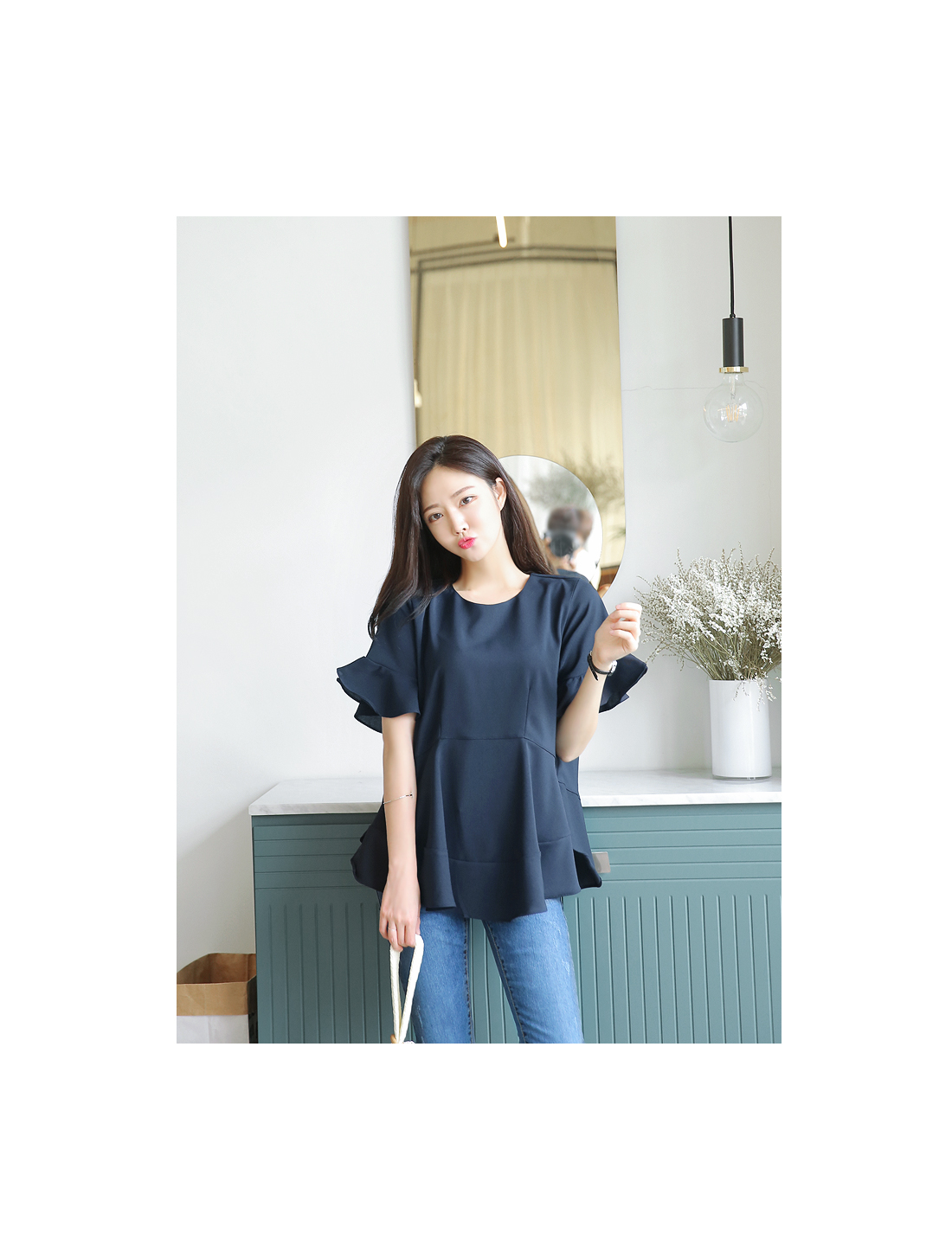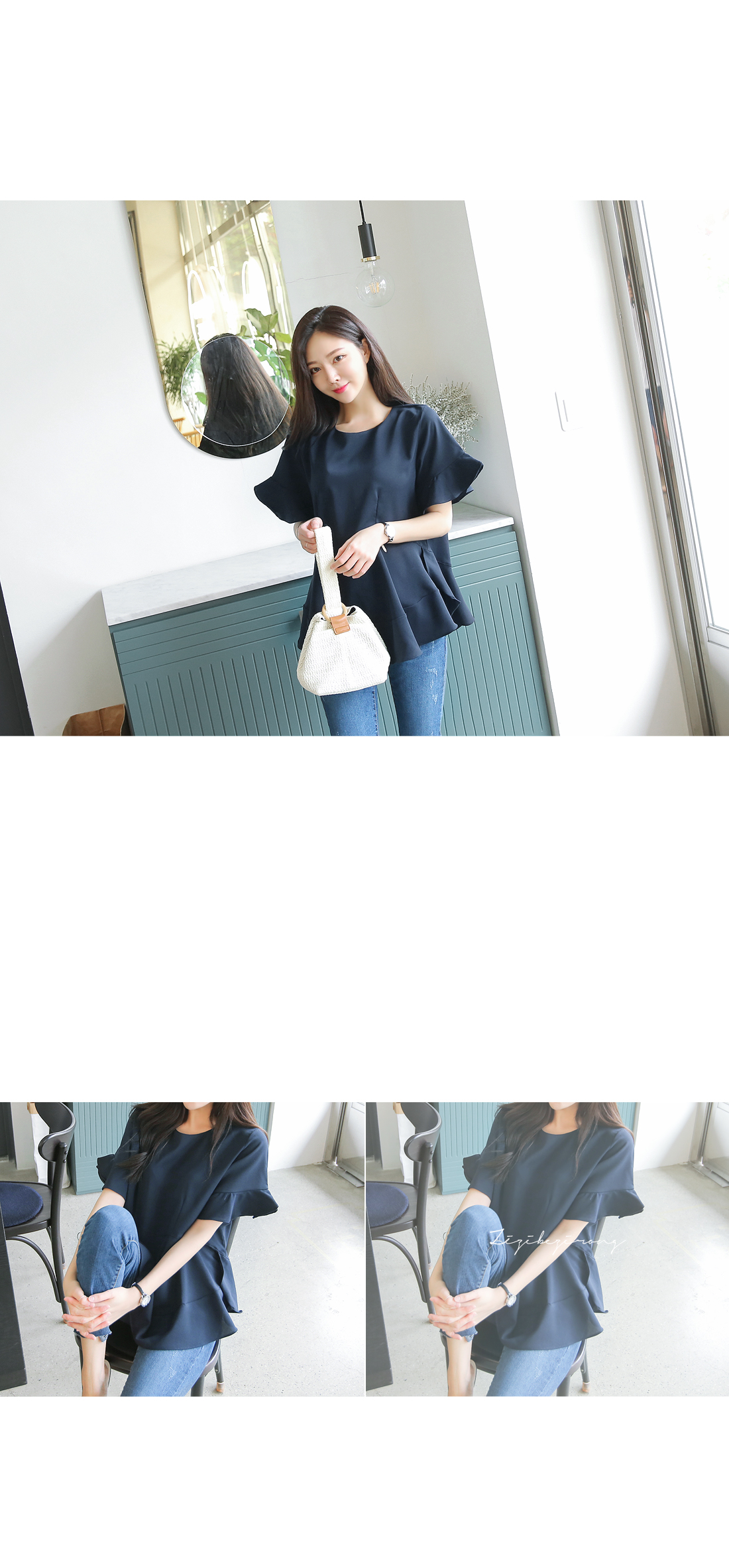 살~랑이는 프릴 디테일이 돋보이는 블라우스에요.