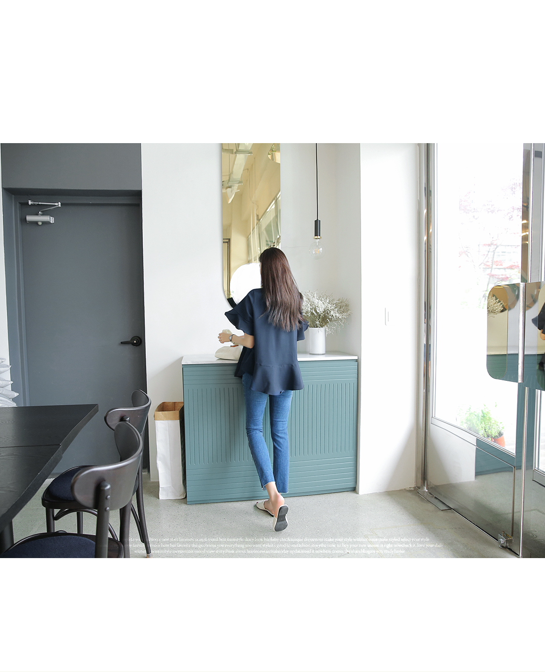 소매 부분에 프릴 디테일을 더해주어,