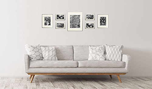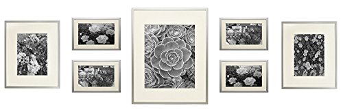 Frametory, Gallery Wall Collection 7-Piece Aluminum Silver Photo Frame Kit with Ivory Color Mat & Real Glass