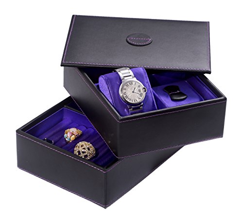 Time Factory AJ-BB620BLK Leather Stacked Jewelry Box , Black