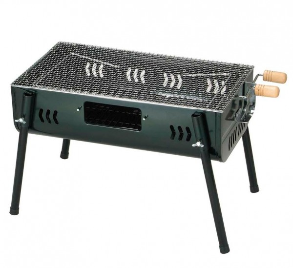 小窓から炭のつぎたしも簡単にできるバーベキューコンロです。 |