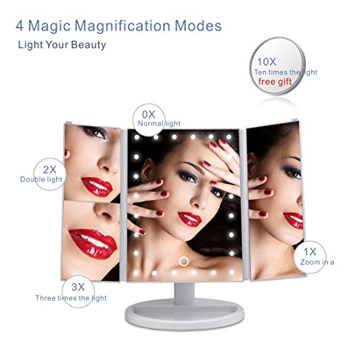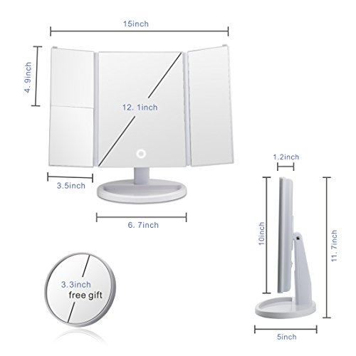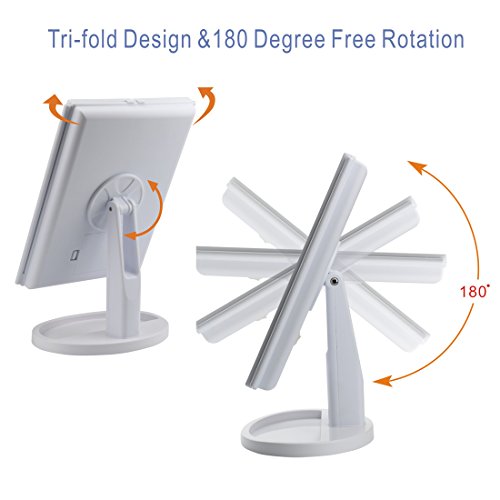 - 【Tri-fold Design &180 Degree Free Rotation】 - Vanity Mirror can be freely adjusted and fixed,ensuring a perfect and comfortable viewing angle. Tri-fold and detachable design convenient for you to take it anywhere.