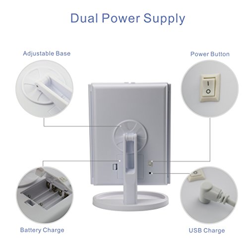 - 【Double Power Supply】- This LED makeup vanity mirror can be charged by included micro USB rechargeable cable or 4 pcs AAA batteries(Not included).Please note the mirror can’t store power itself.