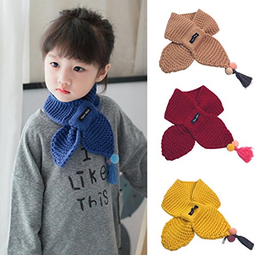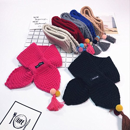 | (Unknown)/Accessories/Cold Weather Accessories/DIRECT FROM USA/ZX101 Baby Cute Warm Scarf Kids Boys Girls Fashion Tassels Pompoms Woolen Yarn Winter Knitting Scarf |