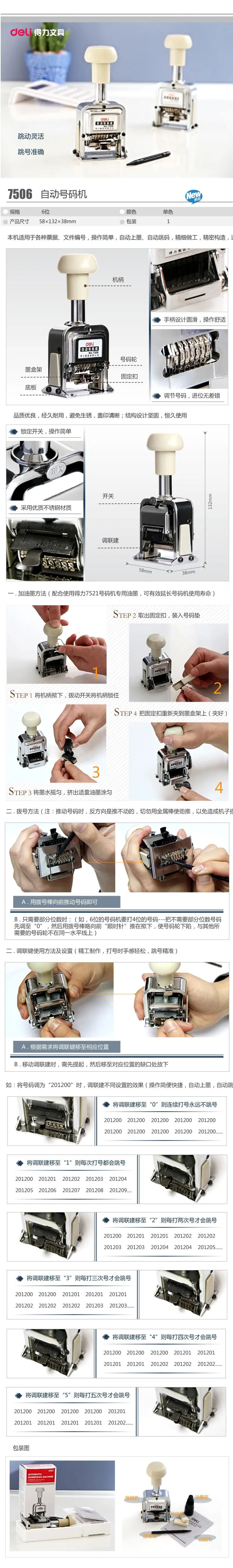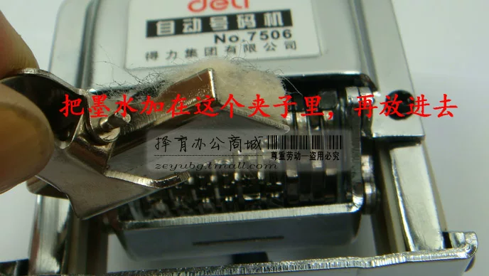 [Ink]: The machine should use special numbering machine ink Deli 7521 ink, such as the use of ink stamp pad ink or other parts will rust, stick, causing movement failure.