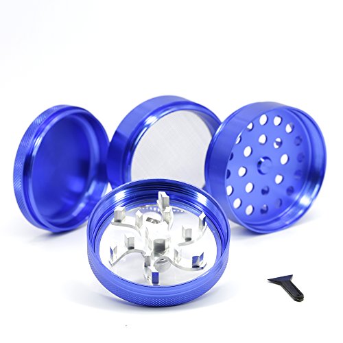(Ben Yan's Store)/Kitchen Dining/Cook's Tools Gadgets/DIRECT FROM USA/4 Part Aluminum Diameter 63mm Handle Herb Grinder Spice Miller (Blue)