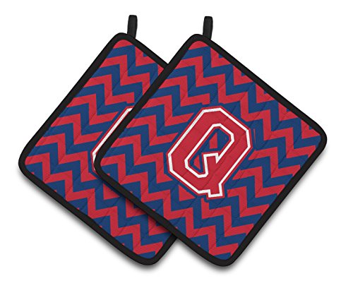 Caroline's Treasures Letter Q Chevron Yale Blue & Crimson Pair of Pot Holders CJ1054-QPTHD, 7.5HX7.5W, Multicolor